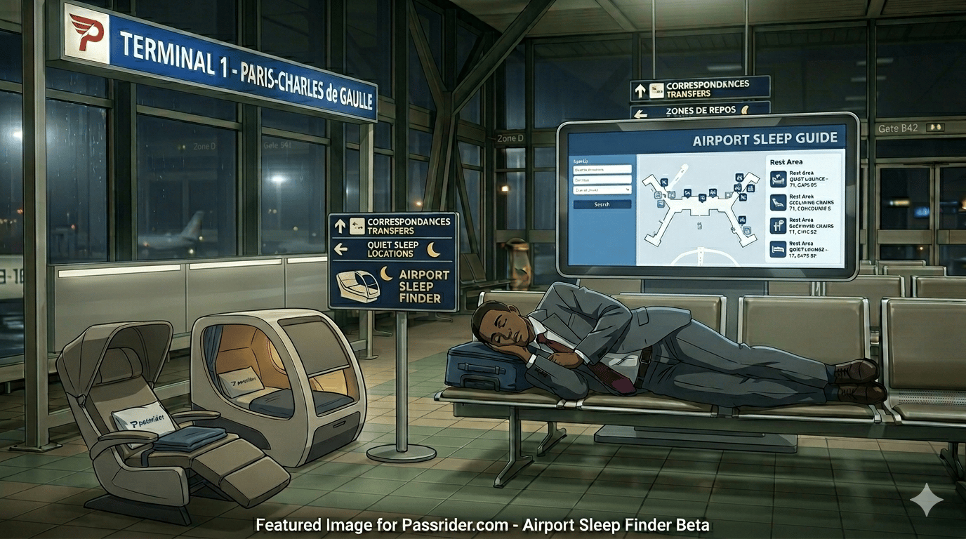 This is a long way to tell you that I launched a new page in beta that will tell you which airports have sleep/rest facilities. Check it out at https://www.passrider.com/airport-sleep-finder/. Hit reply to tell me what you think, etc.