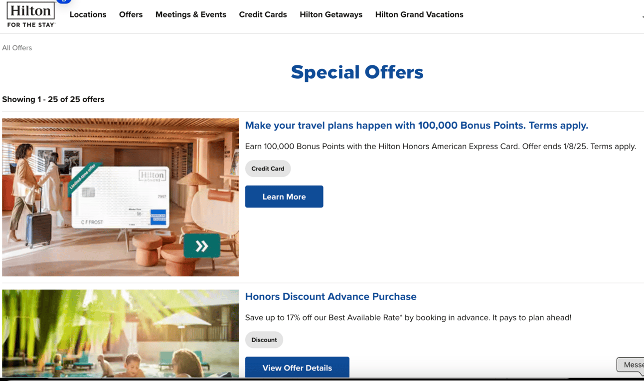 Hilton has several special offers on their website. Check them out before your next booking.